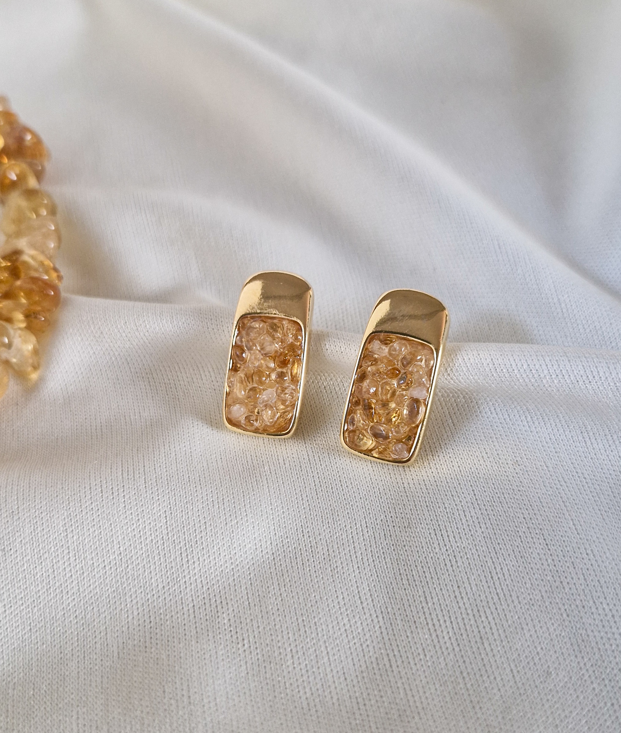 Brinco Citrino Cascalho – Elegância, Prosperidade e Luz