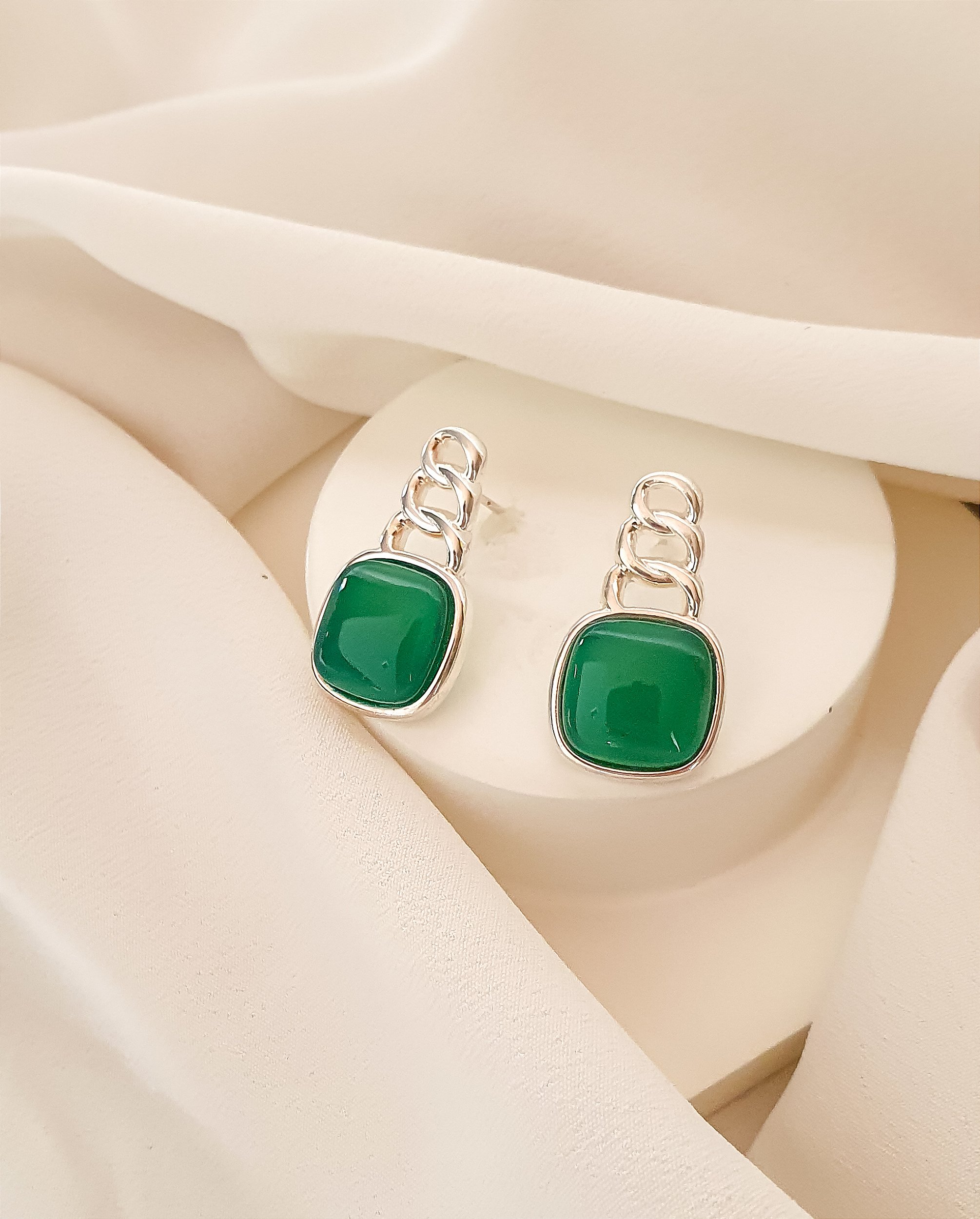 Com design único, este brinco combina o detalhe trançado no pino com a beleza da pedra natural ágata verde. Folheado a prata 925, proporciona um brilho elegante e duradouro, mantendo sua sofisticação em cada uso.