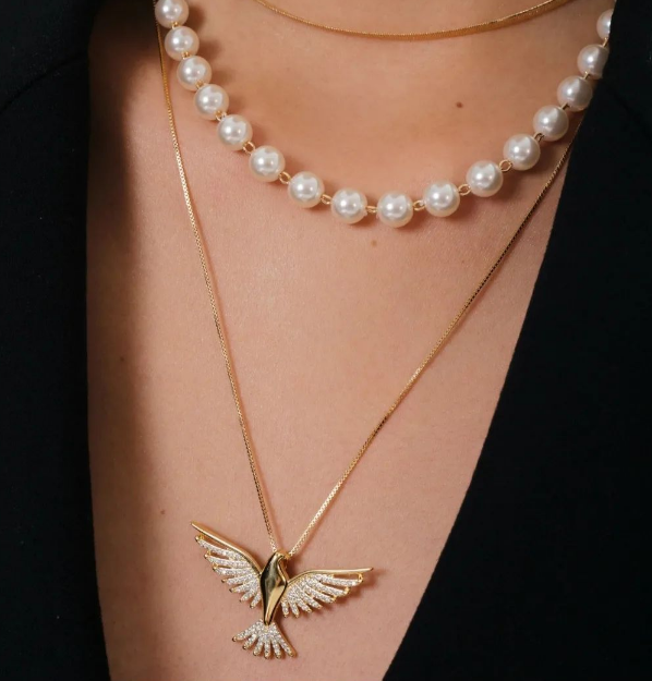 O Colar Espírito Santo Cravejado de Zircônias Folheado a Ouro é uma joia magnífica que combina a delicadeza da fé com o brilho radiante das zircônias. Mais do que um acessório, este colar representa a devoção, a proteção e a esperança, convidando você a fortalecer sua conexão com o divino e celebrar sua fé com estilo.